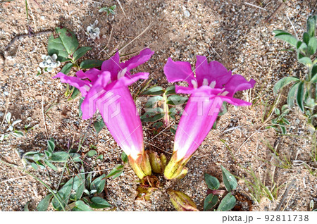 中国青海省 黄河源流の砂礫地に咲くノウゼンカズラ・コンパクタ