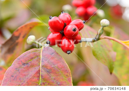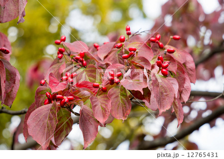 紅葉 ハナミズキの葉 赤色の実
