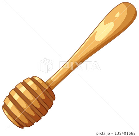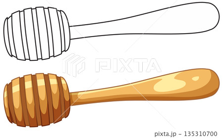 Wooden Honey Dipper Vector Illustration in Color and Line Art