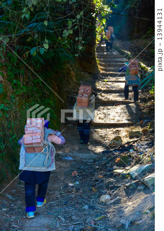 中国・雲南省 元陽県で仕事をする地元住民
