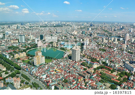 ベトナムハノイ ニンビンにある東洋一の敷地面積を誇る世界遺産のバイディン寺の本堂から見た仏舎利塔
