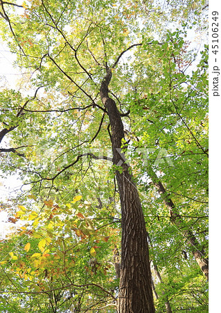 自然 植物 コナラ、秋。黄色や橙色に色づいたと緑色の葉が混在しています②