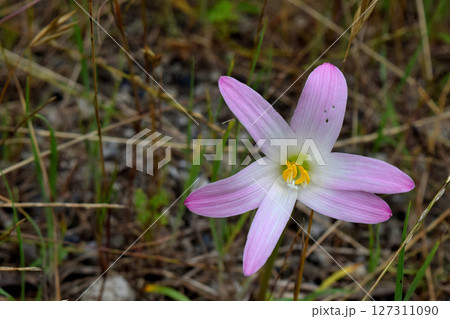 ゼフィランサスのピンクの花 父島 小笠原諸島