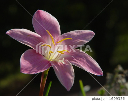朝日を浴びて生き生きと開花したピンク色の花 花(10月)ハブランサス01V9.16