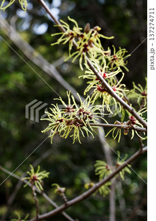 個性的な花姿をしたまんさくの花ー拾