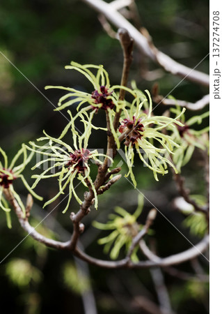 個性的な花姿をしたまんさくの花ー七