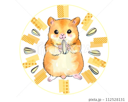 ゴールデンハムスターの立ち姿のイラスト(向日葵の種・おやつ・飼育)