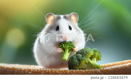ブロッコリーを食べるハムスターの赤ちゃん