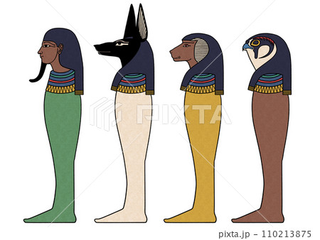 Canopic Jar Egyptian Deities God Anubis Horus Khnum sign symbol mummification ritual ancient Egypt mythology belief design illustration