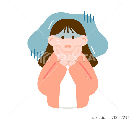 怯えた表情で震える女性のシンプルイラスト