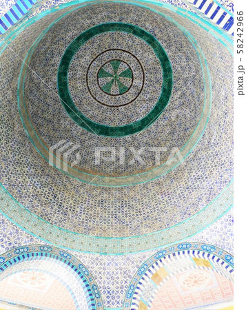 エルサレムの神殿の丘にある岩のドーム近くの東屋の天井
