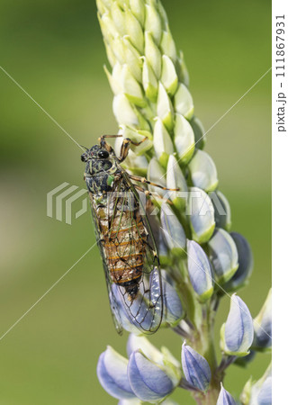ルピナスにとまるエゾハルゼミ 札幌市