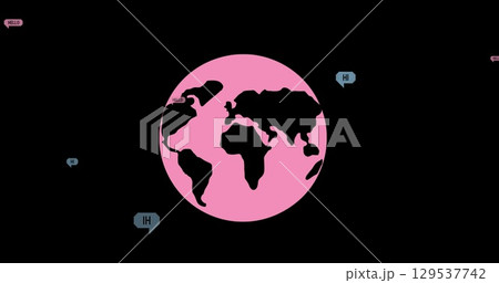 Image of falling hello text over pink globe on dark background