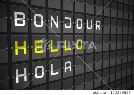 Hello in languages on black mechanical board
