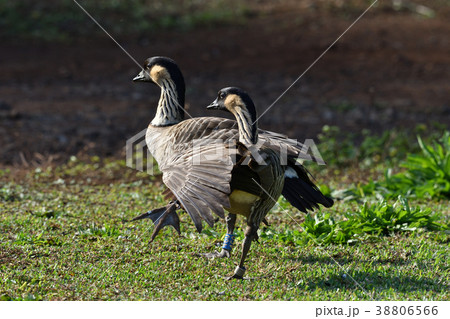 A pair of Nene gooses also known Hawaiian Goose (Branta sandvicensis)