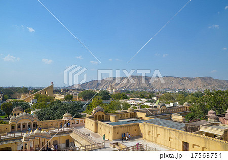 インドのジャイプル 風の宮殿の内部 窓から見た眺め 天文台のジャンタル・マンタル