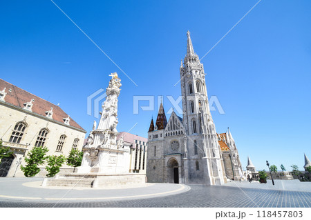 ハンガリー初代国王聖イシュトヴァーンの像とマチューシャ聖堂