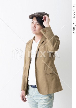 ハンチングを被っている正面向きの東洋人の探偵(2色)