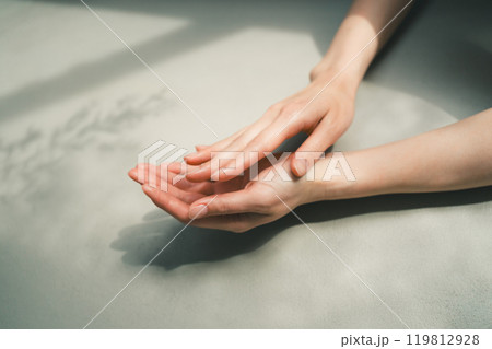 ハンドケアする女性の手元【パーツカット】