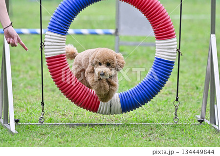 ナイスジャンプ!! 笑顔で走るトイプードル