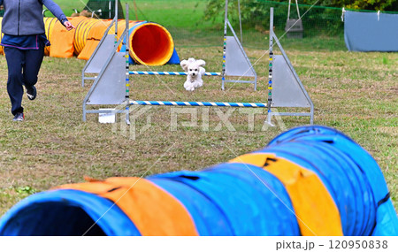 トレーニング中の女性とシュナウザー ドッグアジリティ ドッグスポーツ ドッグスクール
