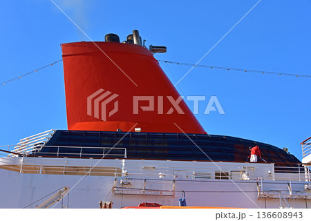 日本の横浜都市景観珍景富士山(中央奥)と飛鳥Ⅲが競演(新港ふ頭にはにっぽん丸)。左に関内タワー…