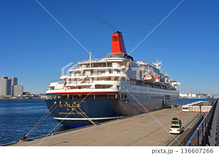 日本の横浜都市景観富士山と飛鳥Ⅲが競演(大さん橋へ)(新港ふ頭ににっぽん丸)日本の豪華客船2隻