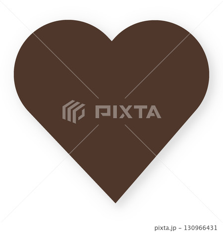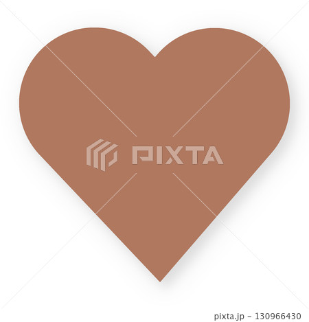 チョコこげ茶色ハートマークのペーパー紙風の影付きイラスト素材 シンプル 白背景 png透明