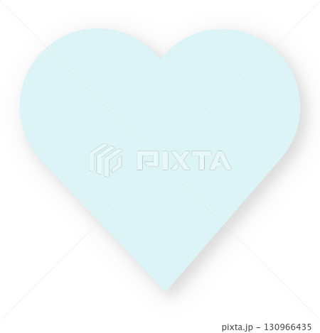 水色ブルーのハートマークのペーパー紙風の影付きイラスト素材 シンプル 白背景 png透明