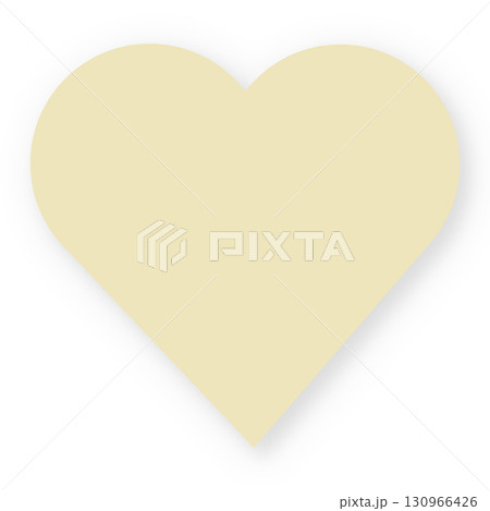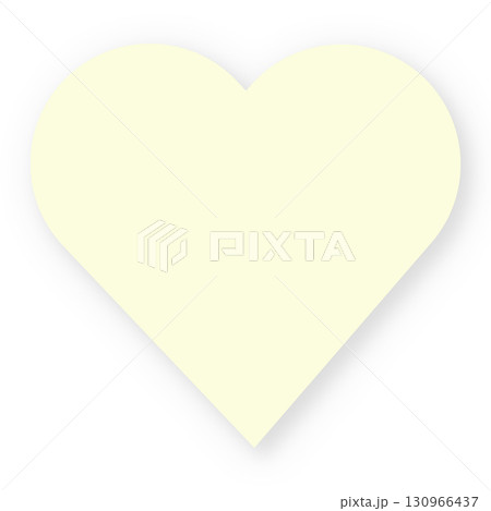 パステル黄色ハートマークのペーパー紙風の影付きイラスト素材 シンプル 白背景 png透明