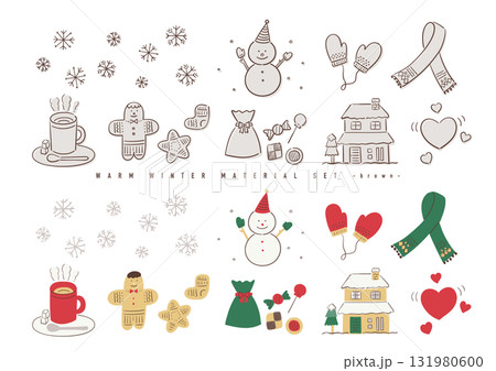 手描き風かわいいクリスマス素材セット(冬モチーフ)