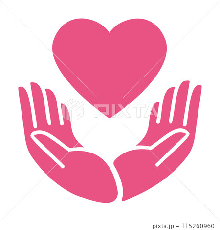 ハートを支える女性の手、手とハートのイメージアイコン、ベクター素材