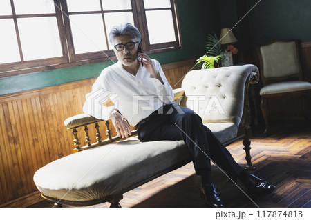 おしゃれなシニア・ミドルエイジ男女のカップルフォト
