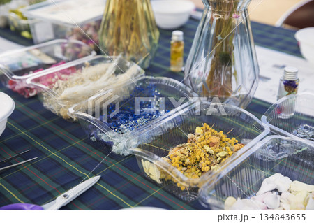 室内で撮影したハーバリウムの画像素材