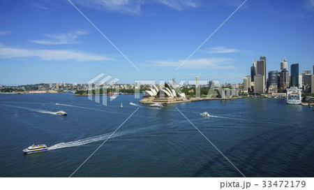 Sydney harbor bay and Sydney downtown skyline with opera house in a beautiful afternoon, Sydney, Australia.
