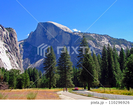 アメリカ合衆国 世界遺産 ヨセミテ国立公園 ヨセミテ渓谷 サイクリングロードから見上げるハーフドーム