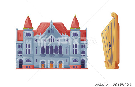 Finnish National Theatre and Harp as Finland Symbol and Attribute Vector Set