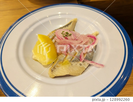 オランダの伝統料理ハーリング – 塩漬けニシンと玉ねぎの一皿レモン添え