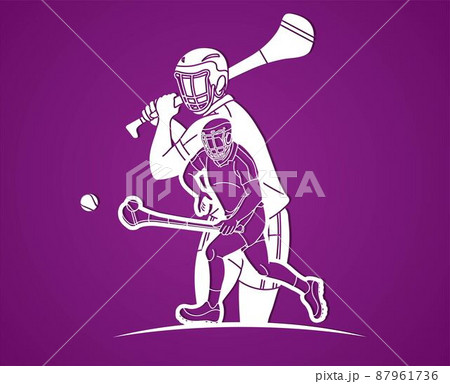 Group of Hurling sport players action. Irish Hurley sport cartoon graphic vector.