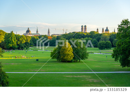 Englischer Garten Public Park and City Skyline. Munich, Bavaria, Germany