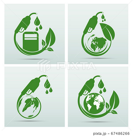 Eco fuel nozzle with green drop and leaf. renewable energy, reduced emissions and sustainable transport.
