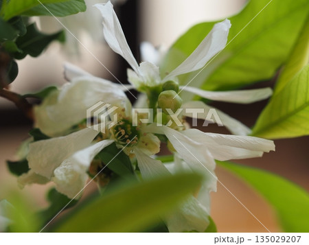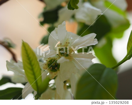 バラ科の園芸種リキュウバイの白い花