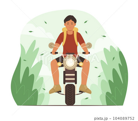 Man with Backpack Riding a Motorcycle for Travel in Nature