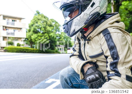 バイクの安全装備 ヘルメットとグローブとメッシュライダーズジャケット