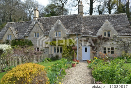 イギリスコッツウォルズのバイブリ―の石造り古民家のノスタルジックな風景