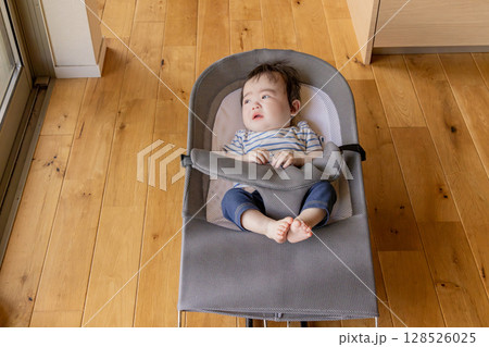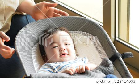 バウンサーで寝る赤ちゃん