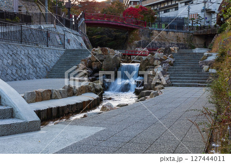 秋の兵庫県神戸市 紅葉の有馬温泉 有馬川親水公園