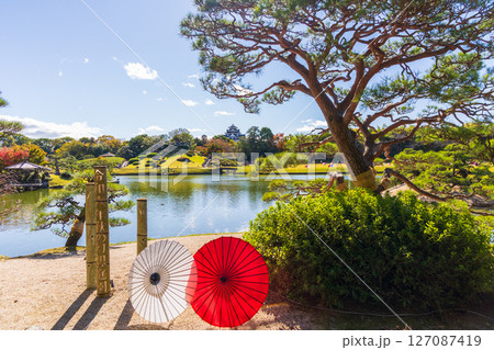 秋の岡山県岡山市 日本三名園 紅葉の後楽園