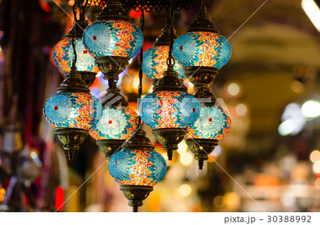 トルコ イスタンブールの旧市街にあるグランドバザールで売られているトルコランプ
