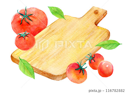 新鮮な野菜とまな板 クッキング 水彩イラスト